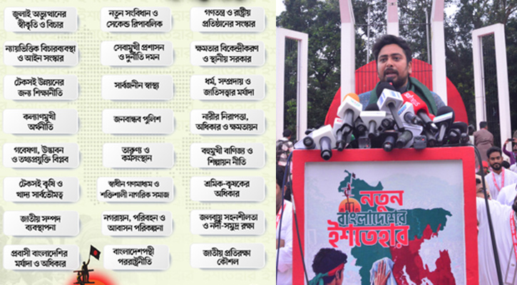 এই জনপদের মানুষের উপনিবেশবিরোধী সংগ্রাম, ১৯৭১ সালের মহান মুক্তিযুদ্ধের কাঙ্ক্ষিত সাম্য, মানবিক মর্যাদা ও সামাজিক সুবিচার প্রতিষ্ঠার লড়াই, এবং জুলাই গণঅভ্যুত্থানে একটি বৈষম্যহীন বাংলাদেশ গঠনের প্রত্যয়ই আমাদের প্রেরণা। আমরা জুলাইয়ে সংঘটিত গণহত্যা, শাপলা গণহত্যা, বিডিআর হত্যাকাণ্ড, গুম ও বিচারবহির্ভূত হত্যাসহ আওয়ামী ফ্যাসিবাদের সময়ে সংঘটিত সব মানবতাবিরোধী অপরাধের দৃষ্টান্তমূলক বিচার ও শাস্তি নিশ্চিত করবো। জুলাই গণঅভ্যুত্থানে শহীদদের পরিপূর্ণ রাষ্ট্রীয় স্বীকৃতি, আহতদের সুচিকিৎসা ও পুনর্বাসন নিশ্চিত করে আজীবন তাদের পাশে দাঁড়াবো। জুলাইয়ের জাতীয় ঐক্য ও হাজারো শহীদের আত্মত্যাগের মহিমাকে ধারণ করার জন্য আমরা জুলাইয়ের স্মৃতি রক্ষা করব এবং সবসময় ফ্যাসিবাদবিরোধী লড়াইয়ের সহযোদ্ধাদের পাশে থাকবো।