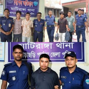 খাগড়াছড়ি:- খাগড়াছ‌ড়ির মা‌টিরাঙ্গায় গত ২‌দি‌নে ধর্ষণ মামলায় পাঁচ ত্রিপুরা যুবক‌কে গ্রেফতার ক‌রেছে পুলিশ। পাহাড়‌কে উত্তপ্ত কর‌তে সম্প্রতি খাগড়াছ‌ড়ি চেঙ্গীনালায় ক‌থিত মারমা কি‌শোরী ধর্ষণ অ‌ভি‌যো‌গে সৃষ্ট দাঙ্গায় ক্ষ‌তের চিহ্ন শুকা‌নোর আগেই এ‌কের পর এক ‌বেরি‌য়ে আস‌ছে থ‌লের বিড়াল। ত‌বে প্রশাস‌নের আন্ত‌রিকতা ও দুরদ‌র্শিতায় উদ্ধত প‌রি‌স্থি‌তি নিয়ন্ত্রন করা হ‌য়ে‌ছে।