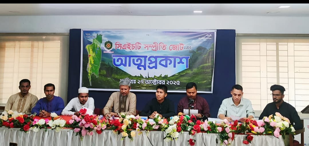 ডেস্ক রির্পোট:- পার্বত্য চট্টগ্রামে বসবাসরত সকল জাতি-গোষ্ঠীর মধ্যে শান্তি, সম্প্রীতি ও সাংবিধানিক অধিকার প্রতিষ্ঠার অঙ্গীকার নিয়ে আজ সোমবার (২৭ অক্টোবর ২০২৫) সকাল ১০টায় জাতীয় প্রেসক্লাবের মওলানা আকরাম খাঁ হলে আনুষ্ঠানিকভাবে আত্মপ্রকাশ করেছে নতুন সামাজিক সংগঠন “সিএইচটি সম্প্রীতি জোট” (CHT Harmony Alliance - CHA)।