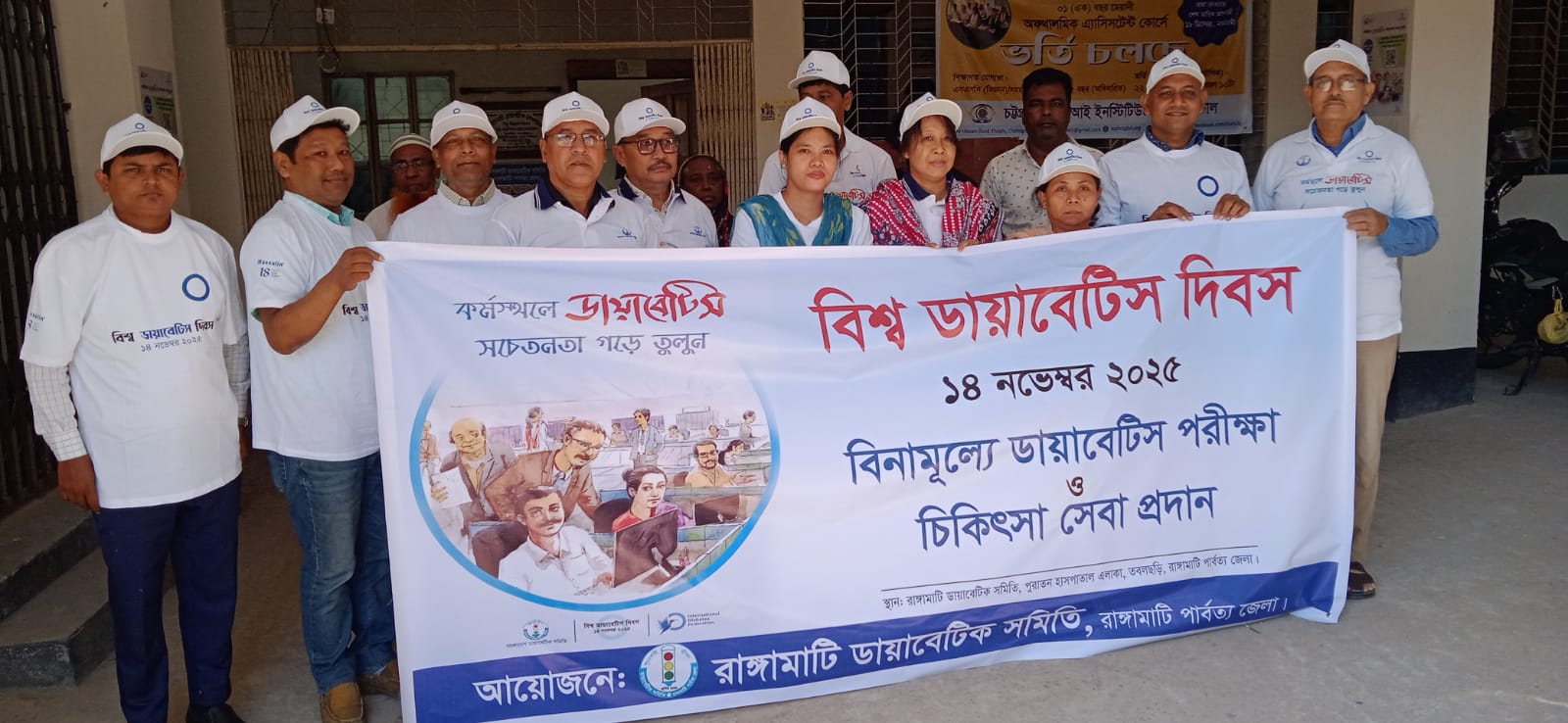 রাঙ্গামাটি:- প্রতি বছর বাংলাদেশসহ প্রায় ১৭০টি দেশে দিবসটি পালিত হয়। এবার দিবসটির প্রতিপাদ্য-‘কর্মস্থলে ডায়াবেটিস সচেতনতা গড়ে তুলুন’। জনগণকে ডায়াবেটিস সম্পর্কে সচেতন করার লক্ষ্যে ১৯৯১ সাল থেকে প্রতি বছর সারাবিশ্বে দিবসটি পালিত হচ্ছে।