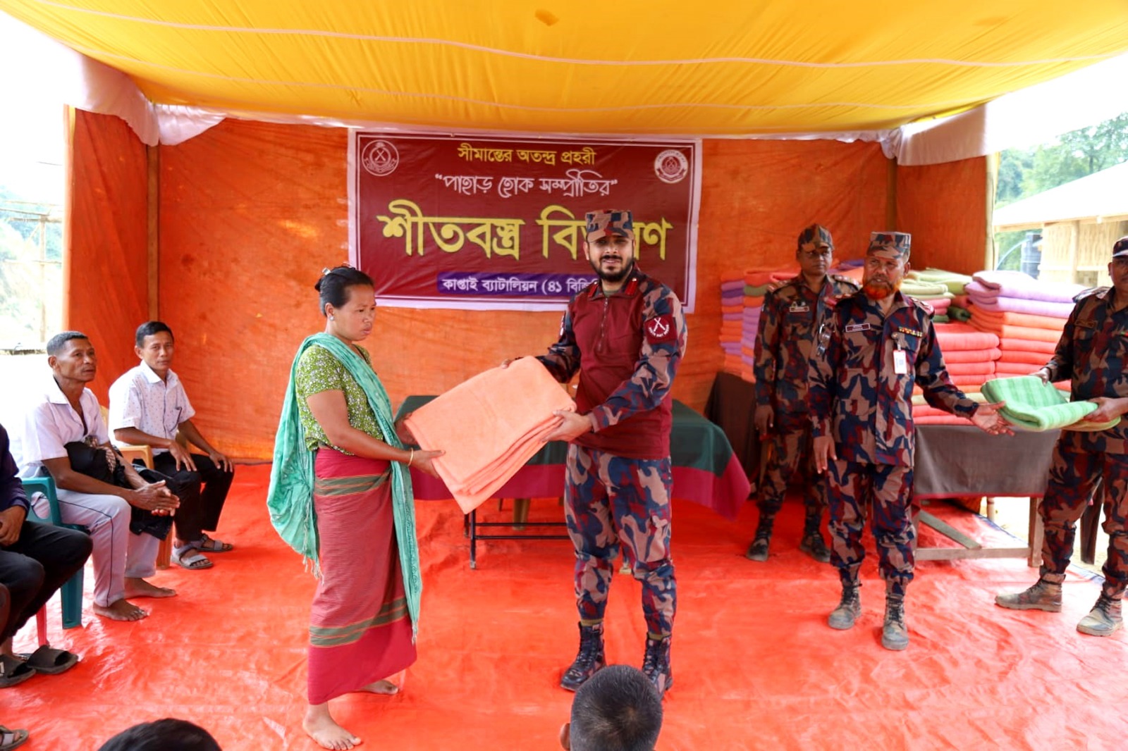 উপজেলার যোগাযোগ বিচ্ছিন্ন এলাকা হিসেবে পরিচিত অদয়াবাবছড়া, পানকাটা, কচুতলী ও জামাইছড়ী গ্রামে এই শীতবস্ত্র বিতরণ কর্মসূচি পরিচালনা করা হয়। এসব দুর্গম এলাকায় বসবাসরত পাহাড়ি ক্ষুদ্র নৃ-গোষ্ঠী ও বাঙালি জনগোষ্ঠীর সাধারণ মানুষ শীতের তীব্রতায় চরম ভোগান্তিতে ছিলেন। তাদের কষ্ট লাঘবে কাপ্তাই ব্যাটালিয়ন এই বিশেষ উদ্যোগ গ্রহণ করে।কাপ্তাই ব্যাটালিয়ন (৪১ বিজিবি) এর অধিনায়ক লেঃ কর্নেল কাওসার মেহেদী, সিগন্যালস্ নিজে উপস্থিত থেকে শীতার্তদের হাতে কম্বল তুলে দেন। এ সময় ব্যাটালিয়নের বিভিন্ন পদবীর বিজিবি সদস্য, স্থানীয় জনপ্রতিনিধি এবং গণ্যমান্য ব্যক্তিবর্গ উপস্থিত ছিলেন।