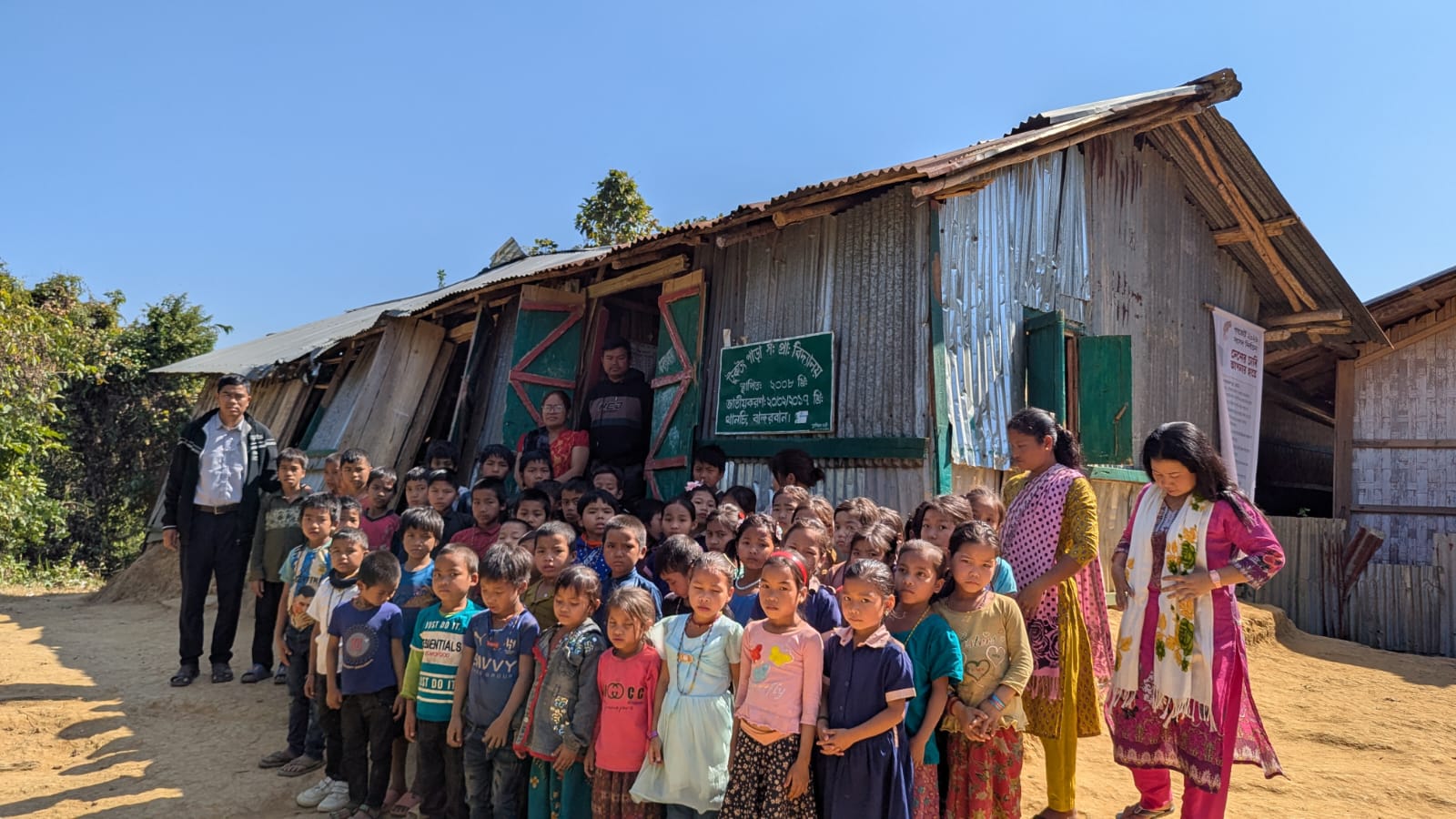সরেজমিনে গিয়ে দেখা যায়, বিদ্যালয় ভবনের টিনের চালা বাঁকা হয়ে গেছে, দেয়ালের টিন ও কাঠ খুলে পড়ার উপক্রম। কোথাও ফাঁক সৃষ্টি হয়েছে, কোথাও আবার পুরো কাঠামো হেলে পড়েছে। এমন ভঙ্গুর ভবনের সামনেই সারিবদ্ধভাবে দাঁড়িয়ে রয়েছে শিশুরা, যা যে কোনো সময় বড় ধরনের দুর্ঘটনার আশঙ্কা তৈরি করছে।
