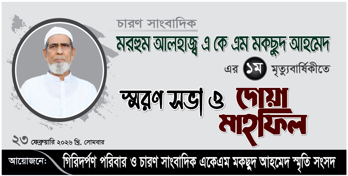 রাঙ্গামাটি:- পার্বত্য চট্টগ্রামের সাংবাদিকতার পথিকৃৎ চারণ সাংবাদিক আলহাজ¦ একেএম মকছুদ আহমেদের প্রথম মৃত্যুবার্ষিকী উপলক্ষে স্মরণ সভা ও ইফতার মাহফিলের আয়োজন করা হয়েছে। সোমবার (২৩ ফেব্রুয়ারি) বিকেলে জেলা পরিষদের এনেক্স ভবনে অনুষ্ঠিত স্মরণ সভায় বক্তারা বলেন, সাংবাদিক একেএম মকছুদ আহমেদ ছিলেন দলমত নির্বিশেষে সকলের কন্ঠস্বর। তিনি ছিলেন অসাম্প্রদায়িক চেতনার মহান ব্যক্তিত্ব। তাঁর হাত ধরেই পাহাড়ে সংবাদপত্র ও সাংবাদিকতার বিপ্লব ঘটেছে। তিনি পার্বত্য চট্টগ্রামের সুখ, দুঃখ, আনন্দ-বেদনার ইতিহাস তুলে ধরেছিলেন বিশ^বাসীর কাছে। তাঁর অনবদ্য সৃষ্টি সাপ্তাহিক বনভূমি ও দৈনিক গিরিদর্পণ পার্বত্য চট্টগ্রামের অপার সম্ভাবনাকে বিশ^ দরবারে তুলে ধরে অত্রাঞ্চলের অবকাঠামোগত উন্নয়ন সহ সামগ্রিক উন্নয়নে বৈপ্লবিক ভুমিকা রাখেন। বক্তারা এক বাক্যে বলেন, তাঁর সৃষ্টি দৈনিক গিরিদর্পণকে বাঁচিয়ে রাখতে হবে। এছাড়াও পাহাড়ের অবিসংবাদিত এই গুনীজনকে রাষ্ট্রীয় সর্বোচ্চ সম্মাননায় ভুষিত করার দাবি জানান।