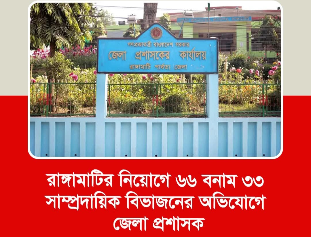 নুরুল আলম:- রাঙ্গামাটি জেলা প্রশাসকের অধীনে সম্প্রতি সম্পন্ন হওয়া বিভিন্ন পদের নিয়োগে চরম সাম্প্রদায়িক বৈষম্যের স্পষ্ট প্রমাণ সামনে এসেছে। একটি স্বাধীন প্রশাসনিক কাঠামোর অধীনে যেখানে মেধা, যোগ্যতা এবং সমতার ভিত্তিতে নিয়োগ হওয়ার কথা, সেখানে কোটা মেইনটেইনের নামে প্রকাশ্য বৈষম্য প্রতিষ্ঠা করা হয়েছে।